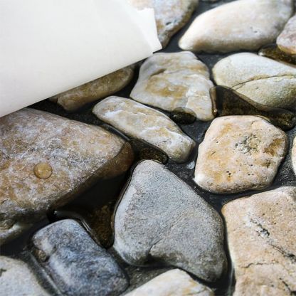 3 mm vystouplý reliéf vytváří skutečný stín a hloubku – efekt působí jako kámen z dálky, ne jako tapeta zblízka. Voděodolný matný vinylový povrch odolává vlhkosti, mastnotě a poškrábání – čistí se vlhkým hadříkem. Vhodné do kuchyní, koupelen, chodeb a obývacích pokojů.