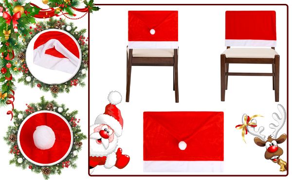 Tyto vánoční potahy na opěradla židlí s rozkošným designem připomínajícím čepice Santa Clause se vyznačují zářivě červeným odstínem zdůrazněným bílou plyšovou bambulí na vrcholu každého potahu. Tento okouzlující doplněk dodá vaší jídelně rozkošný a slavnostní nádech – je to skutečně roztomilá a duchaplná ozdoba!