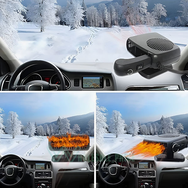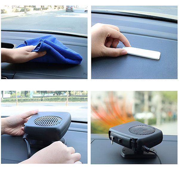 Není potřeba žádné nářadí! Snadno jej připevněte na palubní desku pomocí lepicí základny, zapojte do zásuvky zapalovače automobilu a můžete vyrazit na zimní projížďku.