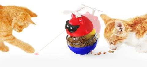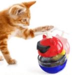 Snacks or cat food can be put by opening the top of the toy, and the outside of the toy is provided with a dial, to control the speed of food dispensing. The dial can be adjusted in three levels, to control the speed of food dispensing, so that cat can finish eating while playing. Slowing down the speed of cat eating is more conducive to the health of the cat diet.