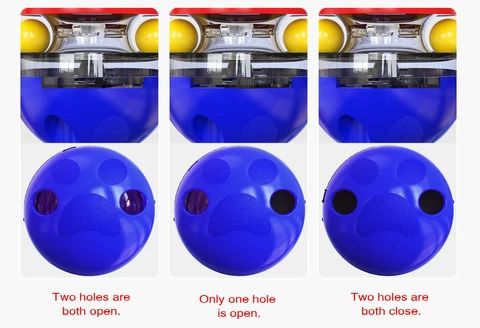 Different with other cat treat toys in market, can adjust size of two food dispensing holes based on your needs .