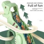 DINOCLIMBER nabízí dinosauří horskou dráhu s hudbou a zářivými světly, která vytváří poutavé dobrodružství, když dinosauři šplhají po schodech za doprovodu rytmu a efektů.