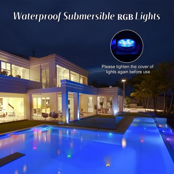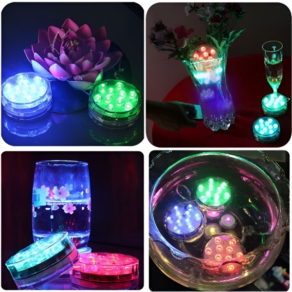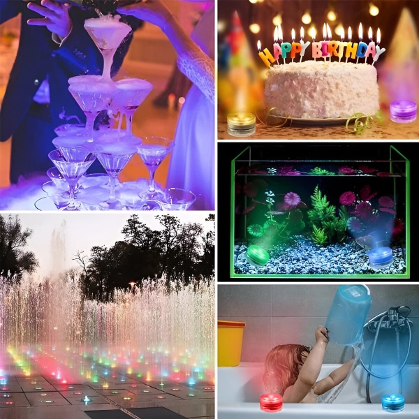 Žádné svíčky, žádné jiskry! Vylepšete snadno atmosféru jakéhokoli akvária, nádoby na vodu nebo kbelíku na led. Tato miniaturní vodní světla s živými barvami elegantně zkrášlí váš bazén, akvárium, vázu nebo jakoukoli dekoraci. Ať už pořádáte večírek, nebo si užíváte klidný večer, tato všestranná světla RGB okamžitě pozvednou vaše okolí.
