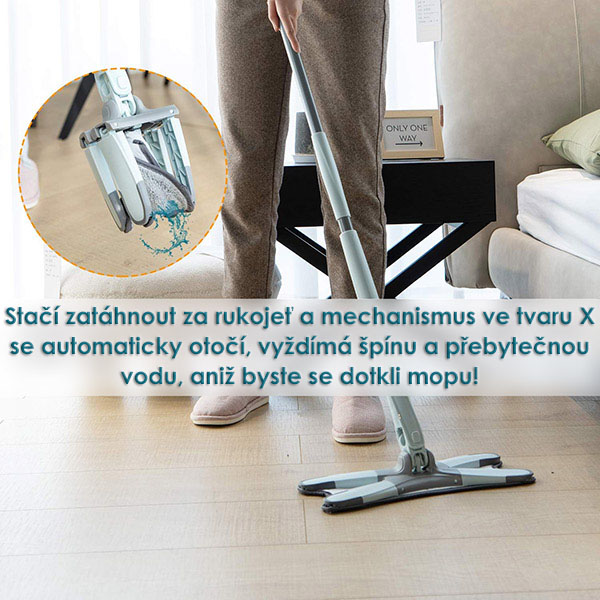 Zapomeňte na promočené mopy a špinavé ruce! Náš pokročilý systém samoždímání napodobuje ruční ždímání, odstraní 2x více vody než tradiční mopy pro rychlejší a snadnější úklid!