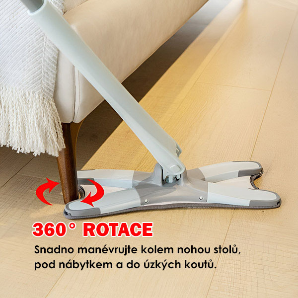 Ohebná, flexibilní hlava mopu snadno dosáhne do úzkých prostor—pod nábytek, za toalety, kolem nohou nábytku a do rohů—takže vy nemusíte.