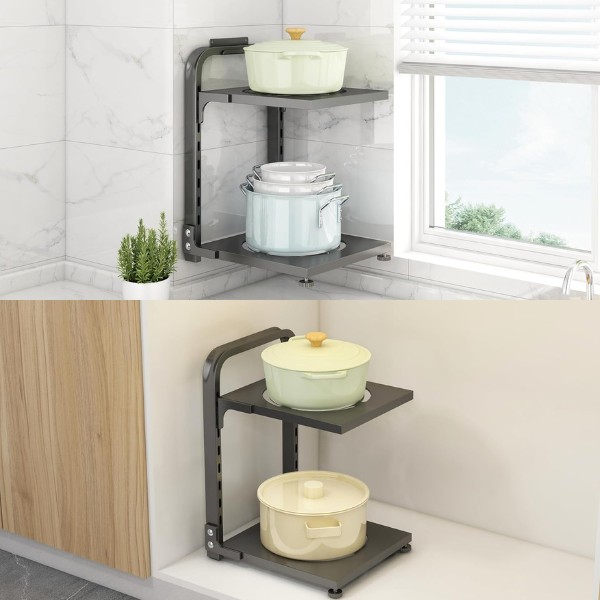 Uspořádejte si kuchyň s lehkostí! Tento stojan na hrnce se dvěma policemi se hodí do každé skříňky a je ideálním řešením pro pořádek v kuchyni.