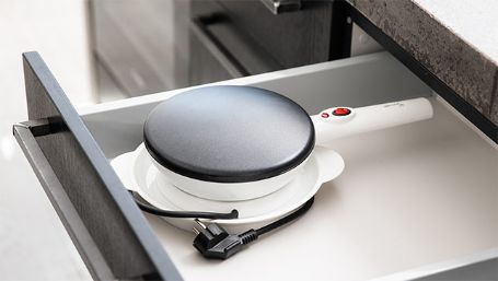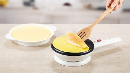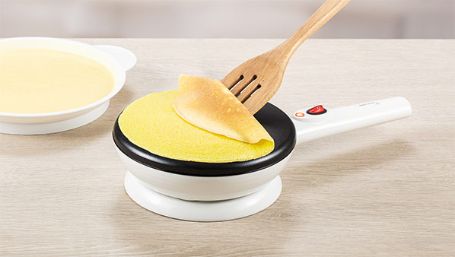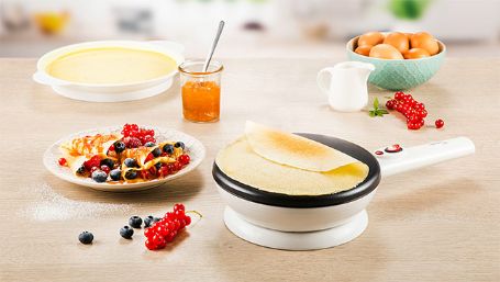 Během několika minut připravte a upečte dokonalé, tenké a kulaté palačinky. Naplňte je ovocem a jogurtem ke speciální snídani, sýrem a šunkou na svačinu a k obědu nebo vytvořte osobité palačinky pro hosty k večeři s řadou sladkých i slaných náplní – to potěší každého!