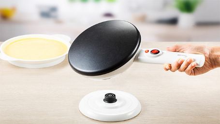 Tento palačinkovač PANCREATE je praktický přístroj pro snadnější přípravu palačinek. Má odolný nepřilnavý povrch a plotýnku – stačí jen ponořit nahřátou plochu do těsta, počkat 20 sekund a pak si vychutnat dokonalé palačinky.