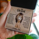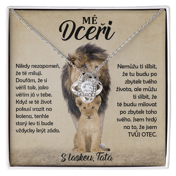 Exkluzivní karta se vzkazem: Mé dceři, Nikdy nezapomeň, že tě miluji. Doufám, že si věříš tak, jako věřím já v tebe. Když se tě život pokusí srazit na kolena, tenhle starý lev ti bude vždycky krýt záda. Nemůžu ti slíbit, že tu budu po zbytek tvého života, ale můžu ti slíbit, že tě budu milovat po zbytek toho svého. Jsem hrdý na to, že jsem tvůj otec. S láskou, táta