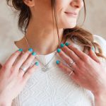 • Přívěsek z bílého 14K zlata s náhrdelníkem z nerezové oceli
