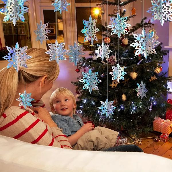 Výrazné 3D vánoční závěsné sněhové vločky se vyznačují nádherným vzhledem, když je zavěsíte ze stropu na chodbách, ve dveřích nebo na jiných kreativních místech, která si dokážete představit.