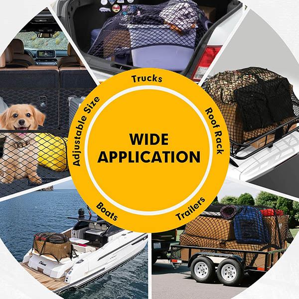 Ideální pro denní nákupy, rodinné výlety, doplňky pro domácí mazlíčky, nářadí, kempingové vybavení, sportovní potřeby, hračky na pláž nebo dokonce pro organizaci volných předmětů doma. Jedna síť – nekonečné možnosti využití. Vhodná pro auta, SUV, dodávky, přívěsy, střešní nosiče a dokonce i lodě.