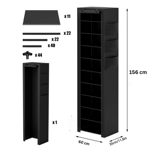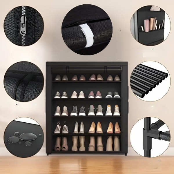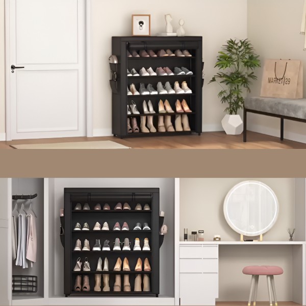 Vybaven prachuvzdorným látkovým krytem a zipem. Tento botník zajišťuje, že vaše boty zůstanou čisté, chráněné před prachem a nečistotami.
