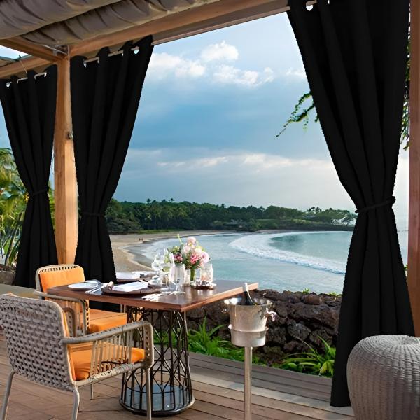 Chraňte svou terasu před deštěm, UV zářením a nepříznivými povětrnostními podmínkami s těmito odolnými, nepromokavými závěsy.